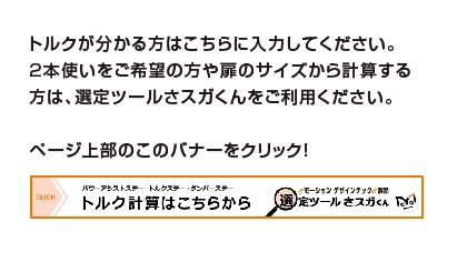 トルクを調整できるタイプや薄型でデッドスペースが少なく内部を有効に使えるタイプなどをご用意しています。横開き扉のぶらつき防止などに使う場合もあります。