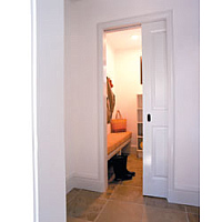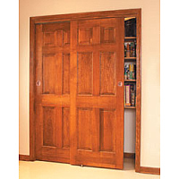 幕板付上レール仕様のため施工手間が省ける、オープンポケットタイプの木扉用引戸金物。