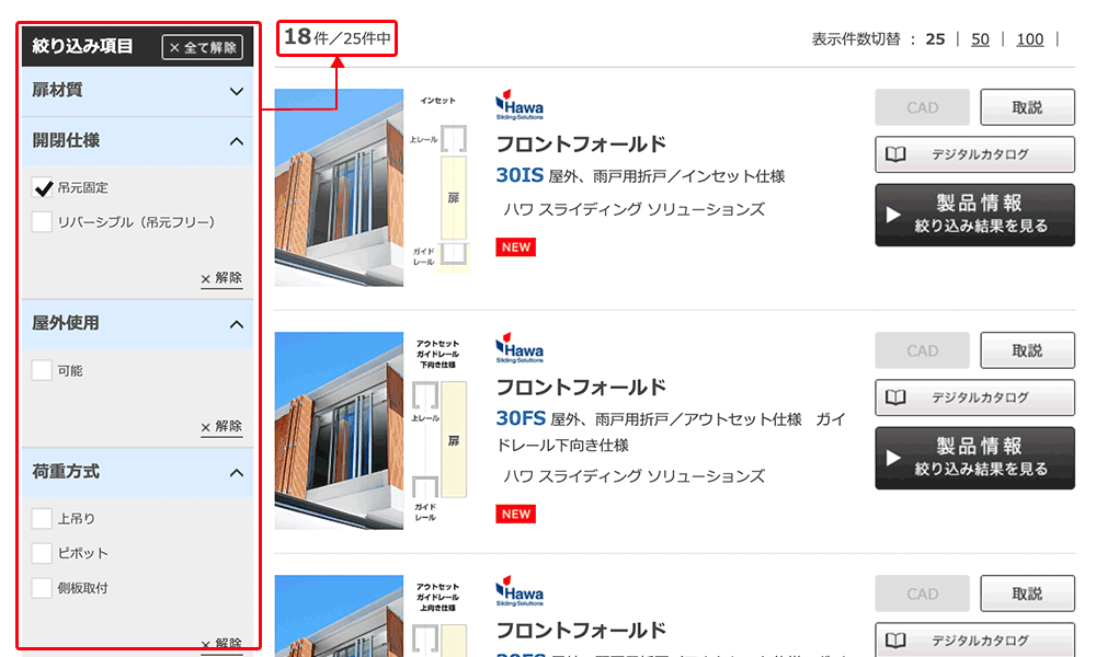 ●下ガイドレール不要のシンプルな収納向け折戸金物です。●上ローラーの可倒式レバーにより、扉の脱着が、より簡単・確実になりました。カタログを開く(見開き版)