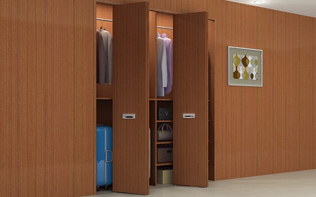 ウォークインクローゼットなどの収納スペースに最適な中量用折戸金物。