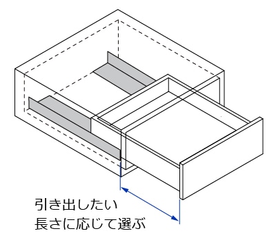 アンダーマウント型のスライドレールは、引き出し底面に取り付けるため引き出しても横からレールが見えません。