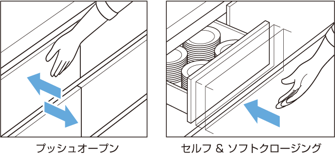 プッシュオープン&ソフトクローズ / セルフ&ソフトクローズ / プッシュオープン