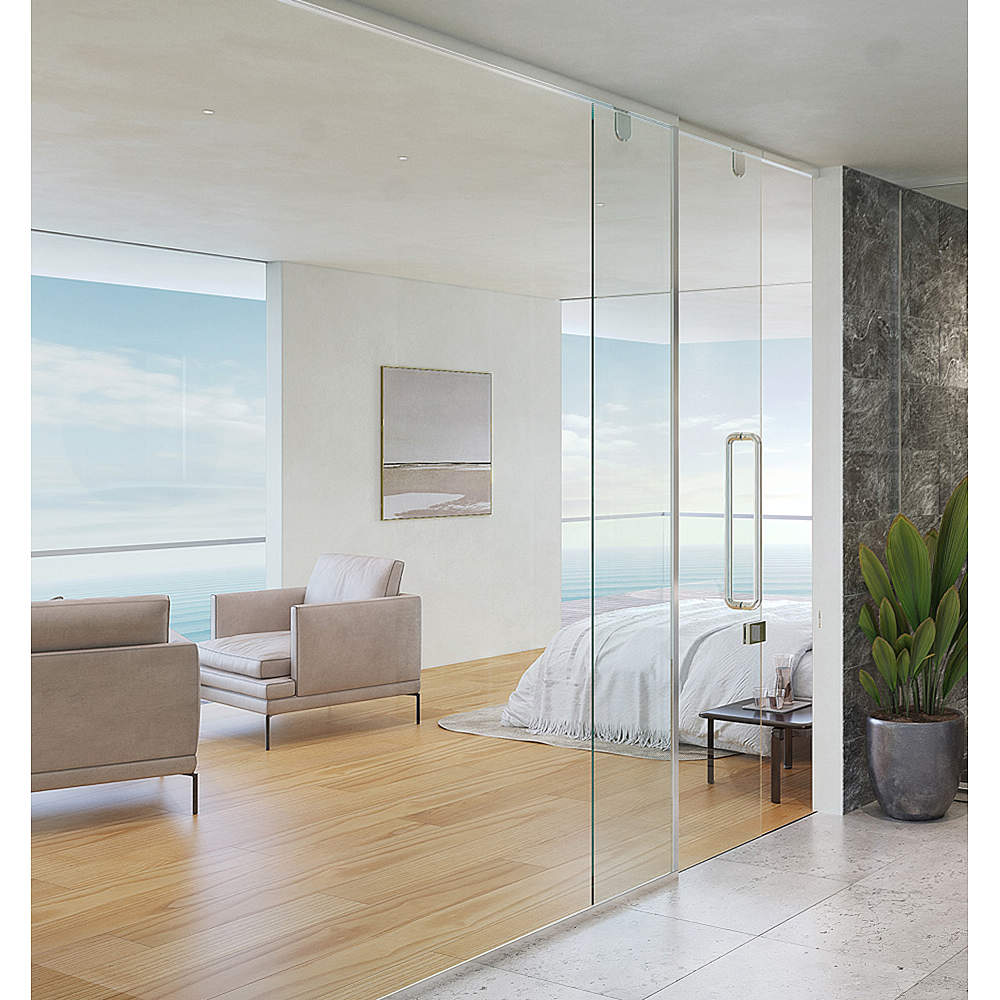 - フレームレスガラス引き戸で開放的な空間に。マグネットソフトクローザー仕様のため重量扉でも快適に操作できます。