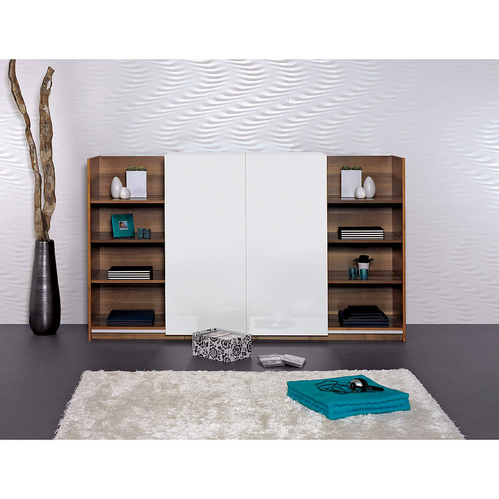 ●2枚のL型扉が連動して開閉する引戸金物です。