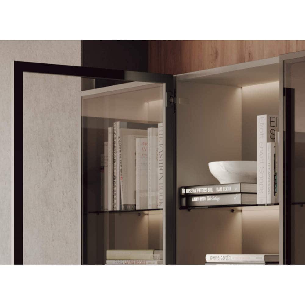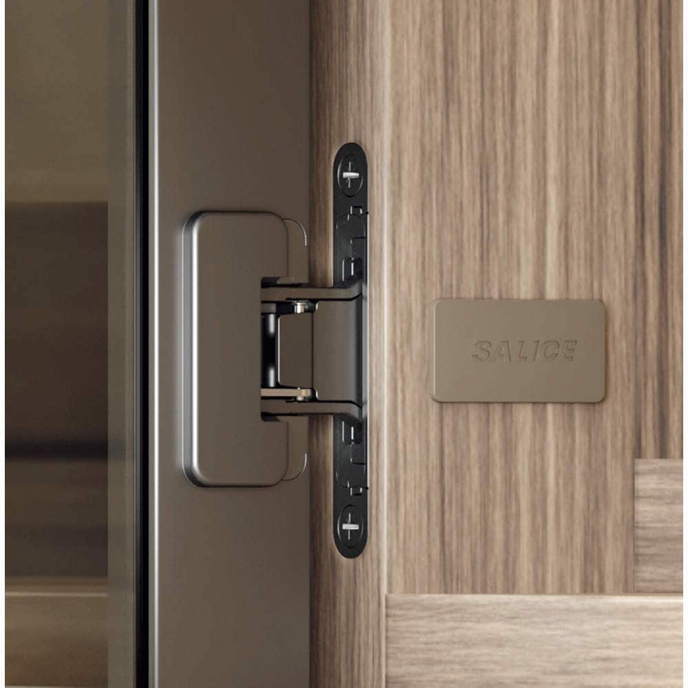 ●コンパクトかつ、キャビネットの側板に掘り込んで取り付けるため、扉を開いたときも金物が目立ちません。