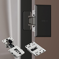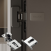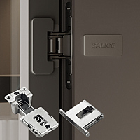 ●コンパクトかつ、キャビネットの側板に掘り込んで取り付けるため、扉を開いたときも金物が目立ちません。