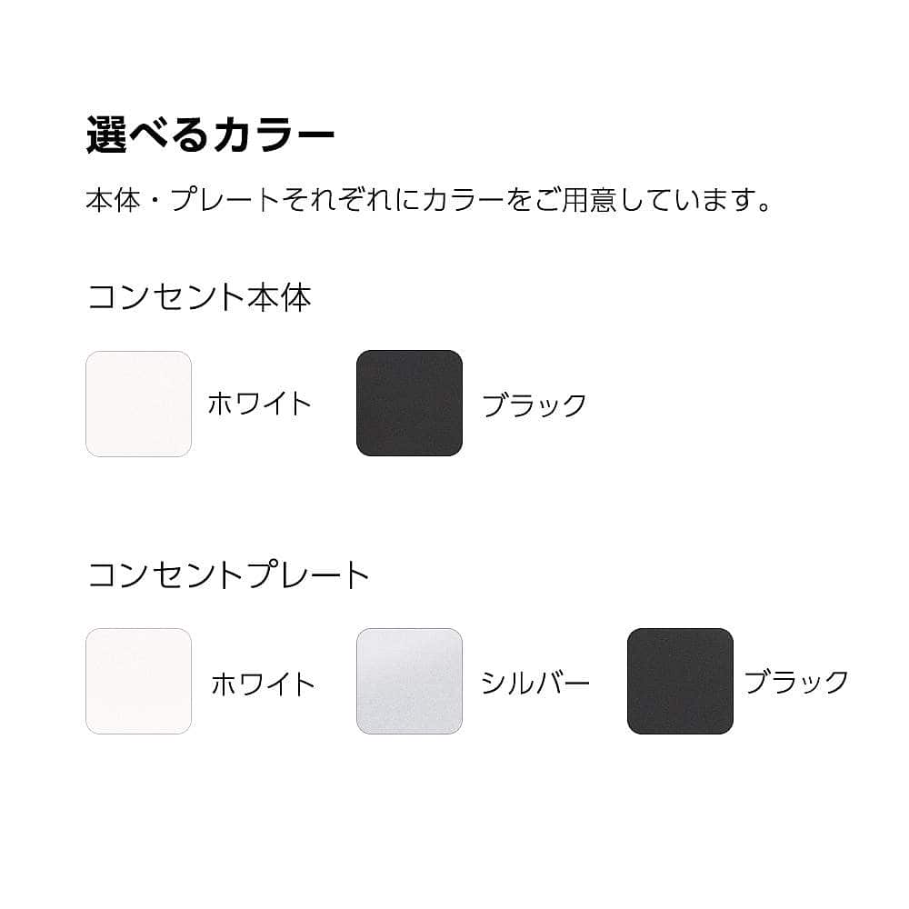 ●本品専用のコンセントプレートは高級感のある金属製で、3色から選べます。厚みは1.5mmと薄く、取付面にすっきりと収まります。