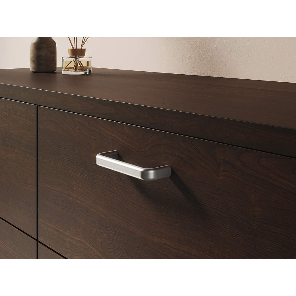 ●ステンレス鋼製の重厚感と、飽きのこないシンプルな形状が特長のハンドルです。