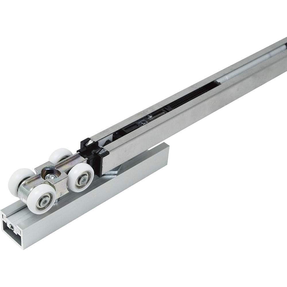 施工後のメンテナンスがしやすい分割連結式上レールを採用したデュアルソフトクローザー仕様の重量扉用引戸金物。