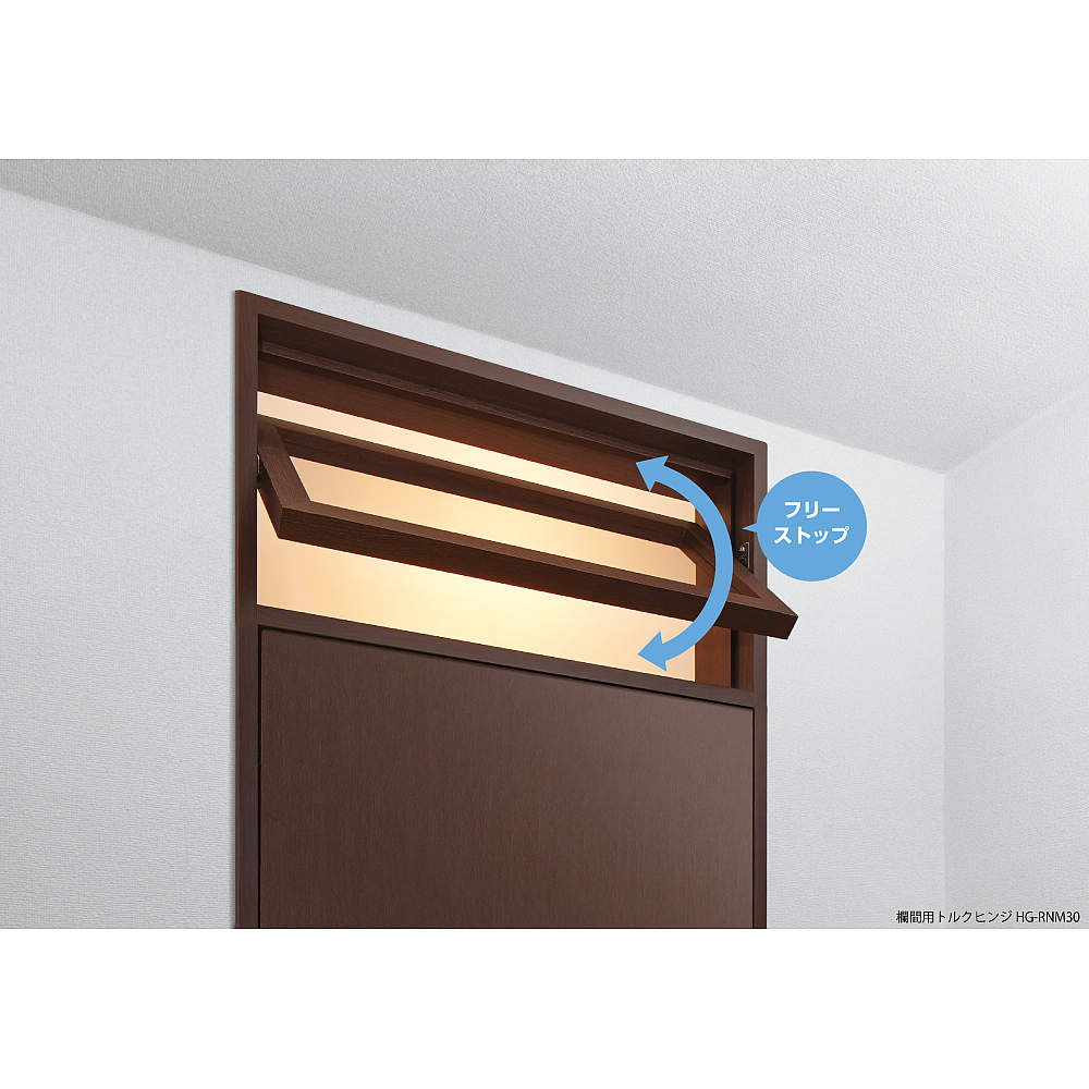 ●フリーストップ機能付きの欄間用ヒンジです。好みの角度で欄間を開けておけるので通気量を大きくでき、効率的に換気できます。
