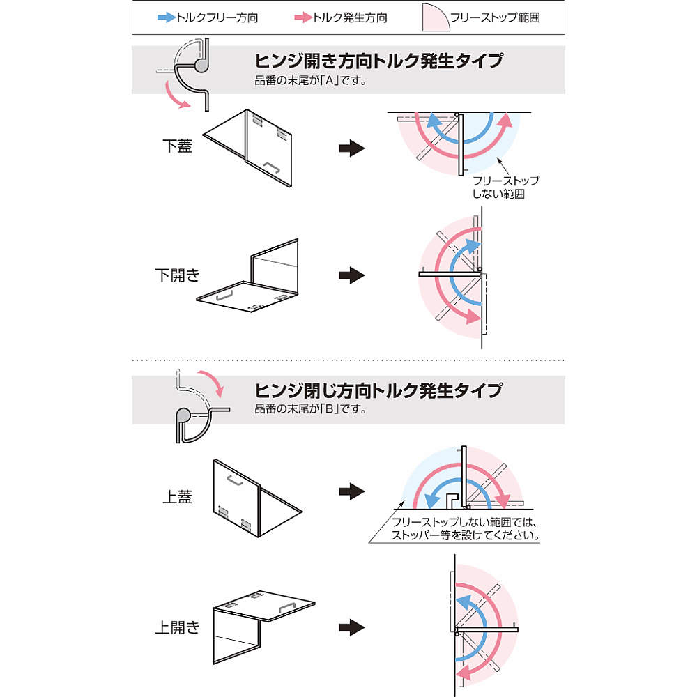 ●フリーストップしない範囲では、ストッパーなどを設けてください(詳細は下図をご覧ください)。