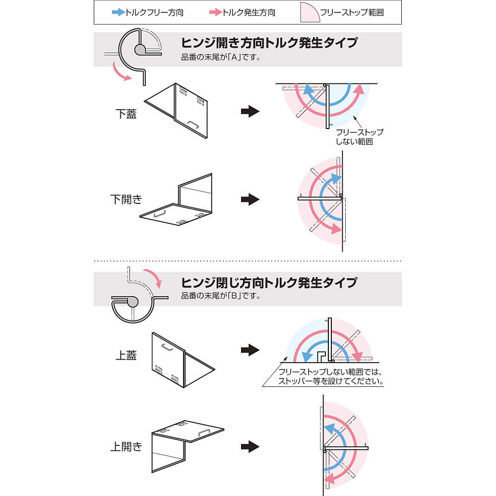 ●フリーストップしない範囲では、ストッパーなどを設けてください(詳細は下図をご覧ください)。
