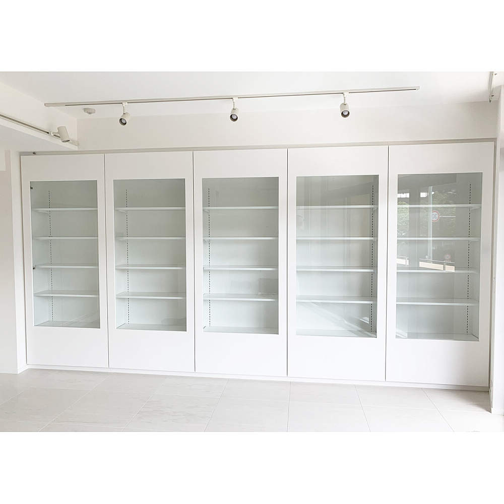 - 厨房台の収納扉に、重量用スライドヒンジをご採用いただきました。厨房台の下にカートを収納するため下板が取付できず、通常のものと比べて筐体の剛性が求められていました。それに伴い、扉自体の剛性も必要だったため、重い扉でもしっかり支えることができる本品が採用となりました。