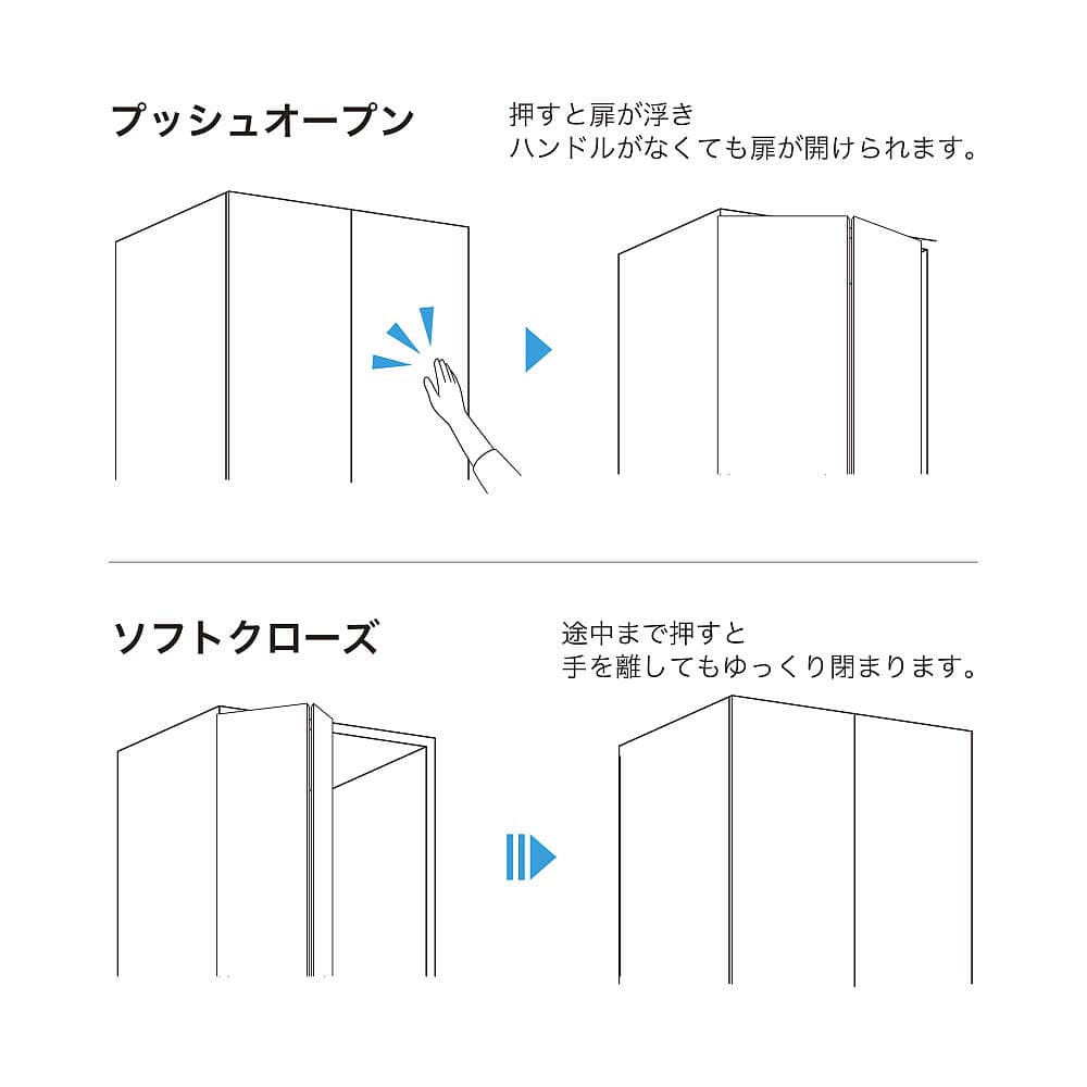 プッシュオープン&ソフトクローズ折戸