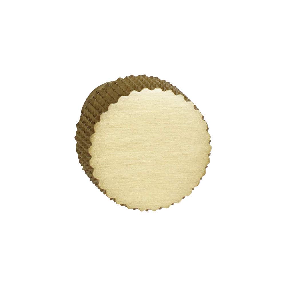 ●シンプルながらも側面のローレット加工が特徴的な真鍮製つまみです。