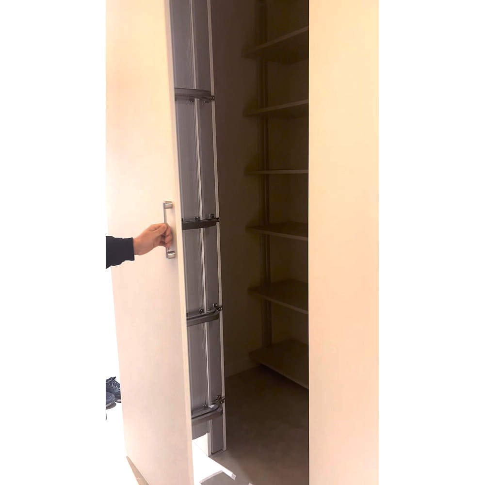 開く時も開いた後も扉が邪魔にならない、斬新な開き扉金物