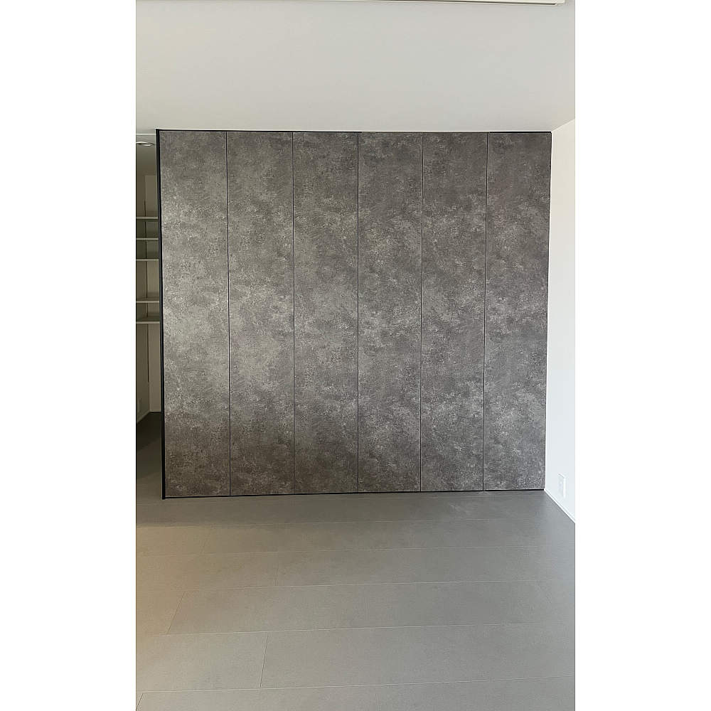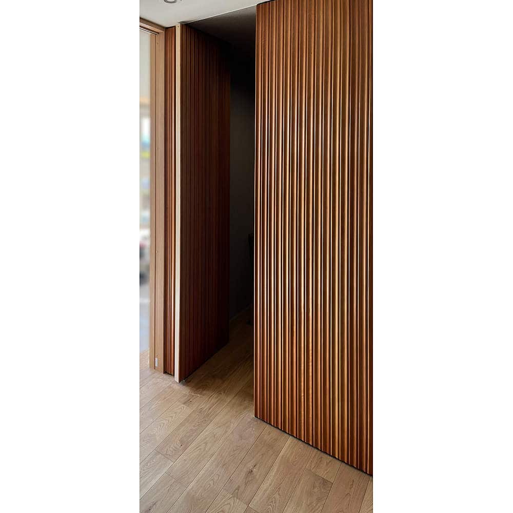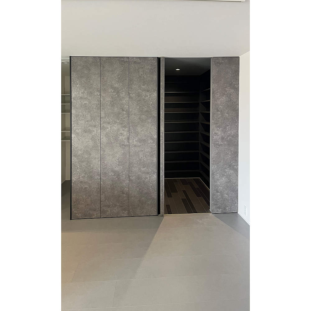 - 隠し丁番・重量用引戸金物を採用いただきました。丁番の軸が出っ張らず閉時に見えないため、扉の美しさをそのまま活かすことができます。