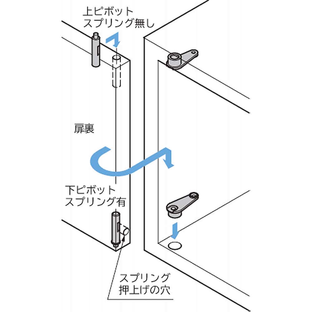 ●下ピボットはスプリング式で、扉の取り付けが簡単です。