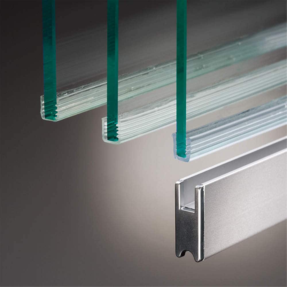 ・下フレームは、ガラスを専用パッキンで挟むだけの簡単な構造です。(中間シリンダープッシュ錠を取り付ける時は、ガラス加工が必要です。ガラス厚8mmの時はシリコーン系シーリング材などで固定します。)
