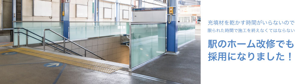充填剤を乾かす時間が不要なので、限られた時間で施工を終えなければならない駅のホーム改修でも多く採用いただいております。