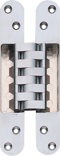 ●36mmの扉にセンター取付できます。(扉の左右勝手なし)●コンパクトながら2ヶで50kgの扉を吊ることができます。●掘込深さが浅く(21mm)、扉や枠の掘込加工が簡単です。●丁番は扉側と枠側に分割でき、扉を枠に仮止めする機能が付いているため、簡単に吊り込めます。●三次元調整機能付(上下、左右、前後)です。カタログを開く(見開き版)