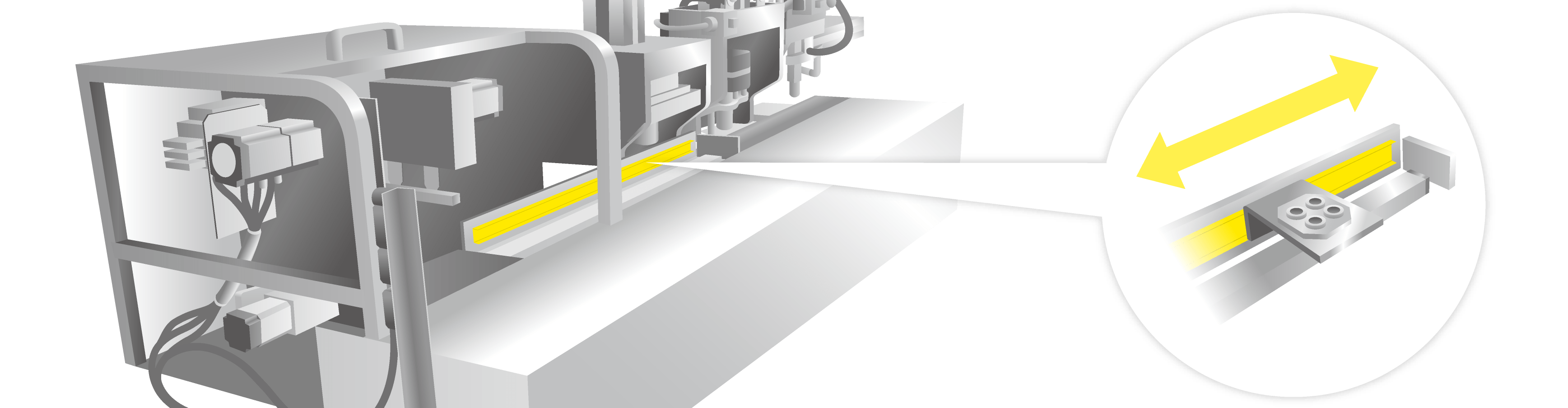 モーメントを受けても安定した動きを実現。各種自動機、カッティングマシーンなど幅広い場面で使用可能です。
